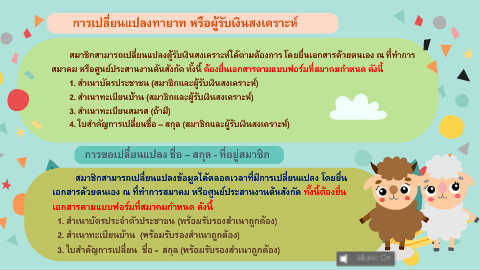 สมาชิกสามารถเปลยนแปลงผูรับเงินสงเคราะห์ไดตามตองการ โดยยืนเอกสารดวยตนเอง ณ ทท าการ