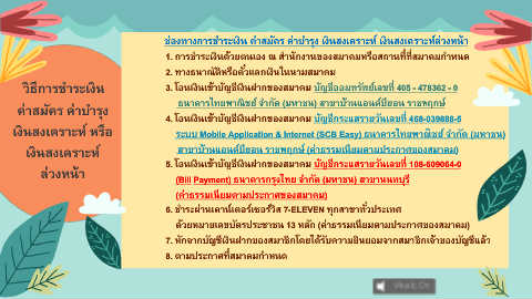 ช่องทางการช าระเงิน ค่าสมัคร ค่าบ ารุง เงินสงเคราะห์ เงินสงเคราะห์ล่วงหนา