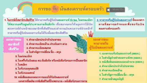 1. ในกรณทสมาชิกเสยชวิต ใหทายาทหรือผูรับเงินสงเคราะห์ ส่ง fax. ใบมรณะบัตร 2. ทายาทหรือผูรับเงินสงเคราะห์ ยื่นเอกสาร