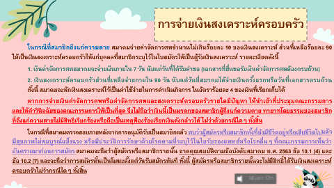 ใหเปนเงินสงเคราะห์ครอบครัวใหแก่บุคคลทสมาชิกระบุไวในใบสมัครใหเปนผูรับเงินสงเคราะห์ รายละเอยดดังน ี ้