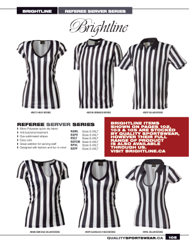 BRIGHTLINE ITEMS SHOWN ON PAGES 102, 103 & 105 ARE STOCKED BY QUALITY SPORTSWEAR, HOWEVER THEIR FULL RANGE OF PRODUCT