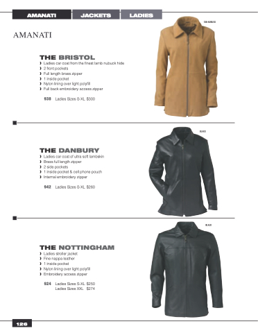 924 Ladies Sizes S-XL $250 Ladies Sizes XXL $274