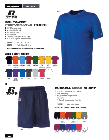 SIZE 3XL NOT STOCKED LOCALLY IN ALL COLOURS