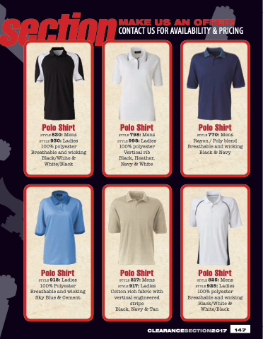 STYLE 830: Mens STYLE 930: Ladies 100% polyester Breathable and wicking Black/White & White/Black