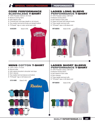 ❱ Two-needlehemmedsleevesandbottom ❱ “R-Russell”logoonleftsleeveend