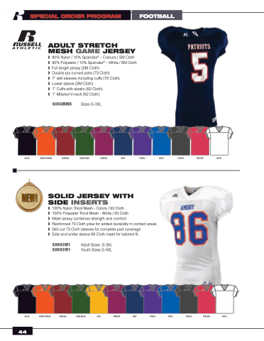 ❱ 90% Nylon / 10% Spandex® – Colours / SM Cloth ❱ 90% Polyester / 10% Spandex® – White / SM Cloth ❱ Fulllengthjersey(SMCloth)