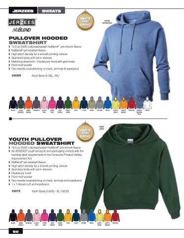 ❱ 13.5 oz 50/50 cotton/polyester NuBlend® pre-shrunk fleece