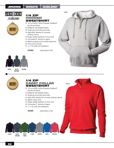 ❱ 13.5oz50/50Cotton/PolyesterNuBlend® pre-shrunk fleece