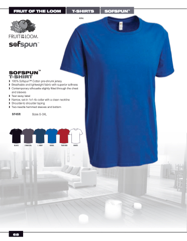 ❱ 100%SofspunTMCottonpre-shrunkjersey