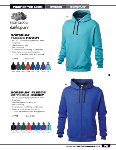 ❱ 60/40Cotton/Polyesterpre-shrunkfleece ❱ 2plyhood