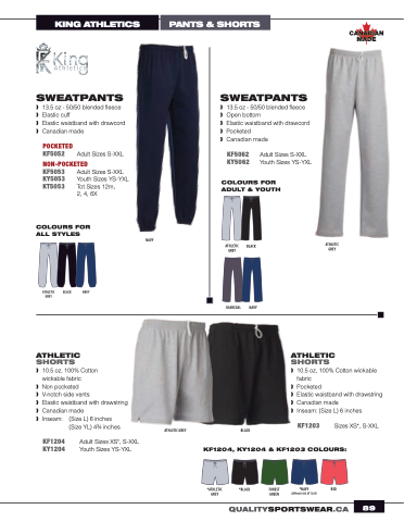 KF1203 Sizes XS*, S-XXL KF1204, KY1204 & KF1203 COLOURS: