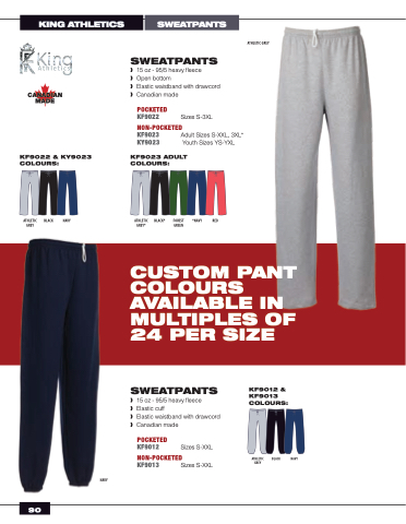 CUSTOM PANT COLOURS AVAILABLE IN MULTIPLES OF 24 PER SIZE