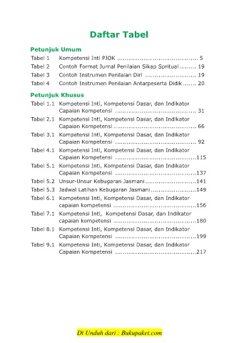 Tabel 1 Kompetensi Inti PJOK ........................................... 5