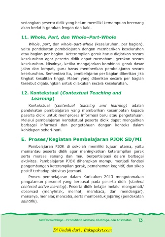 keseluruhan. Misalnya, ketika mengajarkan kombinasi gerak dasar