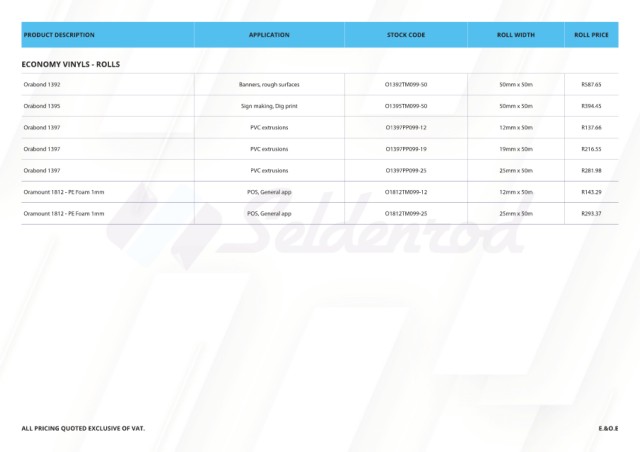 ALL PRICING QUOTED EXCLUSIVE OF VAT. E.&O.E
