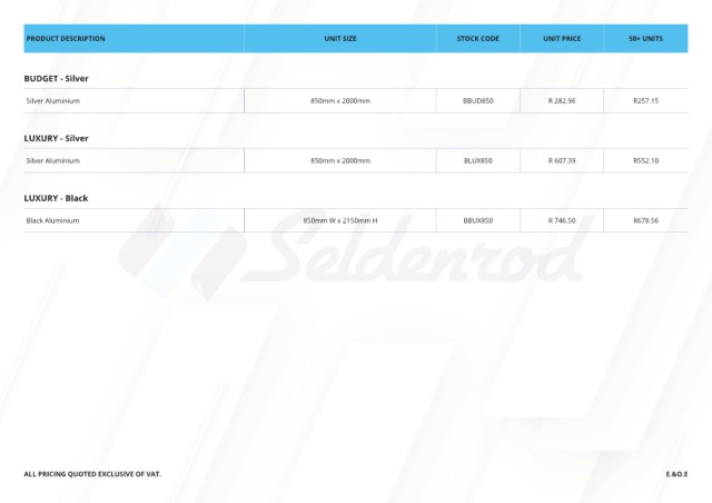 Silver Aluminium 850mm x 2000mm BLUX850 R 607.39 R552.10