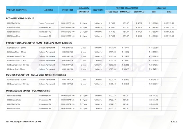 ALL PRICING QUOTED EXCLUSIVE OF VAT. E.&O.E