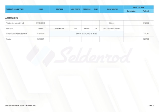 ALL PRICING QUOTED EXCLUSIVE OF VAT. E.&O.E