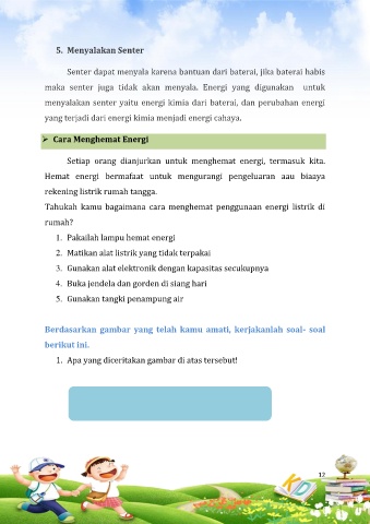 Setiap orang dianjurkan untuk menghemat energi, termasuk kita.