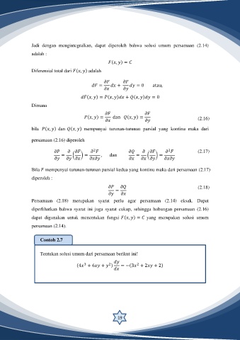 Persamaan (2.18) merupakan syarat perlu agar persamaan (2.14) eksak. Dapat