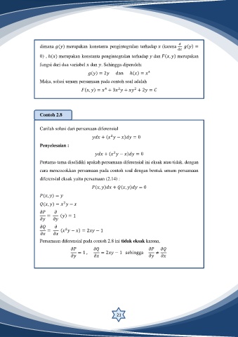 Persamaan diferensial pada contoh 2.8 ini tidak eksak karena,