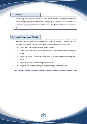 fourier. Prasyarat yang diperlukan untuk mempelajari e-modul ini adalah mahasiswa