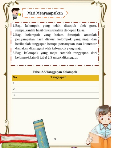 sampaikanlah hasil diskusi kalian di depan kelas.