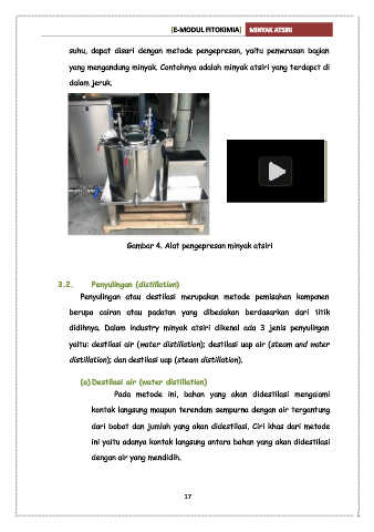 didihnya. Dalam industry minyak atsiri dikenal ada 3 jenis penyulingan