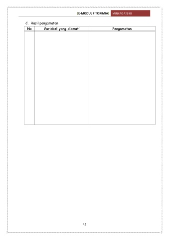 [E-MODUL FITOKIMIA] MINYAK ATSIRI C. Hasil pengamatan No Variabel yang diamati Pengamatan 42