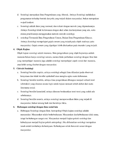 d. Sosiologi merupakan Ilmu Pengetahuan yang Abstrak. Artinya Sosiologi melakukan