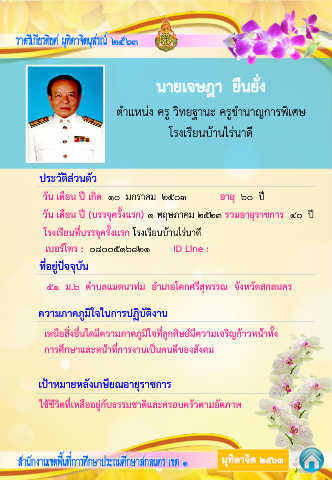 วัน เดือน ปี เกิด ๑๐ มกราคม ๒๕๐๓ อายุ ๖๐ ปี