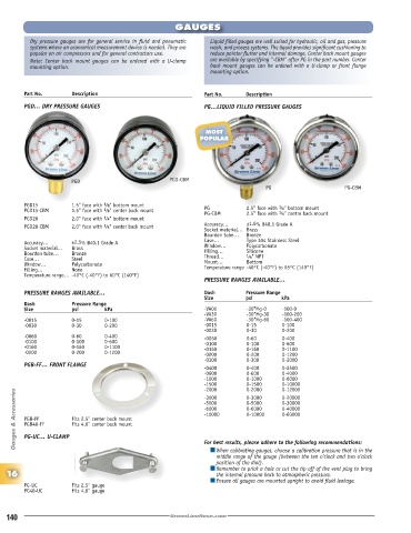 Dry pressure gauges are for general service in fluid and pneumatic Liquid filled gauges are well suited for hydraulic, oil and gas, pressure