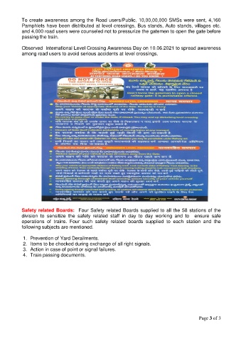 Pamphlets have been distributed at level crossings, Bus stands, Auto stands, villages etc.