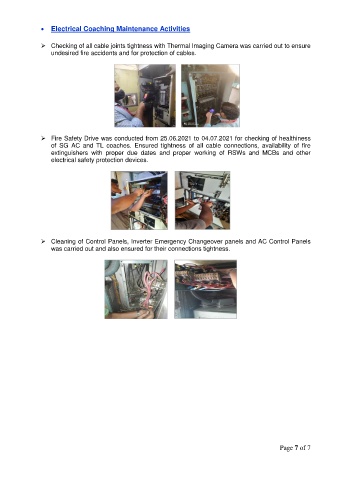 of SG AC and TL coaches. Ensured tightness of all cable connections, availability of fire