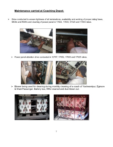 MCBs and RSWs and cleaning of power panel in 17652, 17603, 07425 and 17603 rakes.