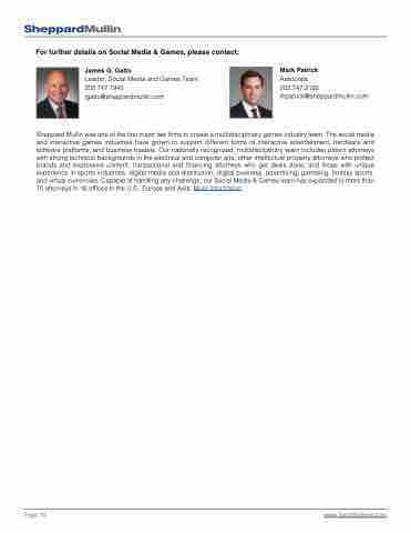 Leader, Social Media and Games Team 202.747.1945 jgatto@sheppardmullin.com