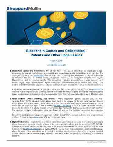 Blockchain Games and Collectibles - Patents and Other Legal Issues