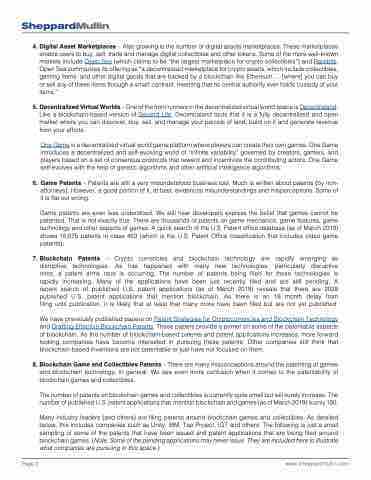 The number of patents on blockchain games and collectibles is currently quite small but will surely increase. The number of published U.S. patent applications that mention blockchain and games (as of March 2019) is only 190.
