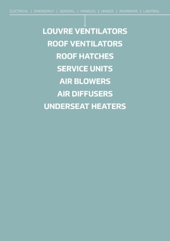 ELECTRICAL | EMERGENCY | GENERAL | HANDLES | HINGES | IRONWORK | LIGHTING LOUVRE VENTILATORS ROOF VENTILATORS ROOF HATCHES SERVICE UNITS AIR BLOWERS AIR DIFFUSERS UNDERSEAT HEATERS