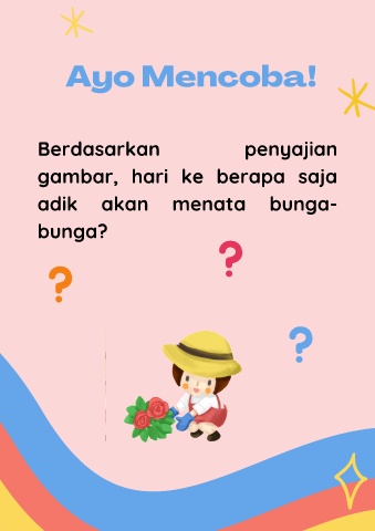 Ayo Mencoba! Berdasarkan penyajian gambar, hari ke berapa saja adik akan menata bunga- bunga?