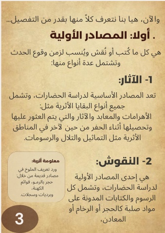 مصادر قديمة من خلال: لدراسة الحضارات ،وتشمل كل