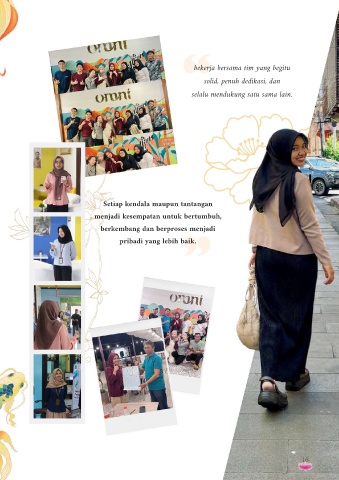 bekerja bersama tim yang begitu solid, penuh dedikasi, dan selalu mendukung satu sama lain. Setiap kendala maupun tantangan menjadi kesempatan untuk bertumbuh, berkembang dan berproses menjadi pribadi yang lebih baik. 16