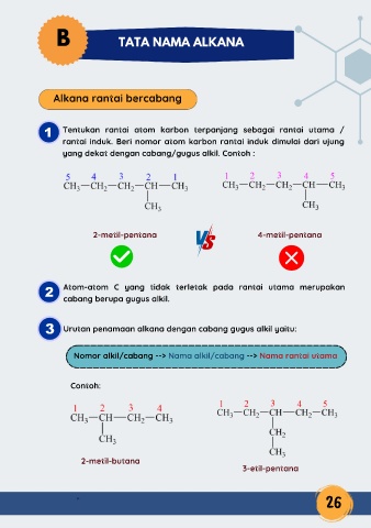 Atom-atom C yang tidak terletak pada rantai utama merupakan