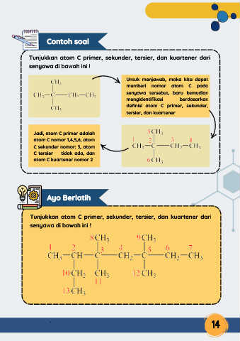 Tunjukkan atom C primer, sekunder, tersier, dan kuartener dari