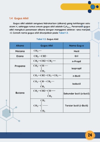 –il. Contoh nama gugus alkil ditunjukkan pada Tabel 1.3.