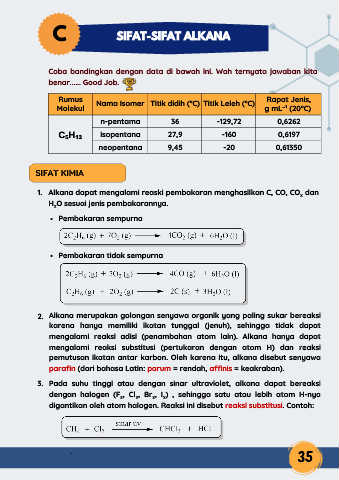 2. Alkana merupakan golongan senyawa organik yang paling sukar bereaksi