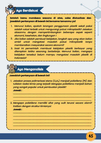 1. Jelaskan proses polimerisasi etena (C₂H₄) menjadi polietilena (PE) dan