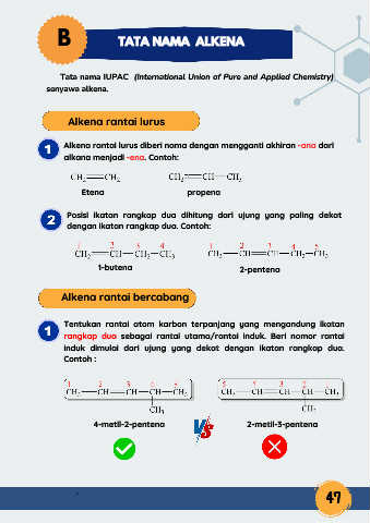 Alkena rantai lurus diberi nama dengan mengganti akhiran -ana dari