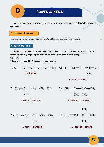 Isomer struktur pada alkena meliputi isomer rangka dan posisi.