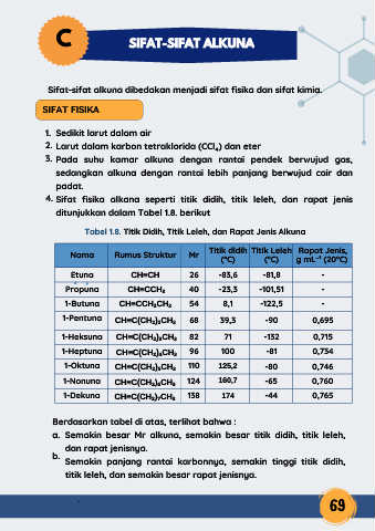 Tabel 1.8. Titik Didih, Titik Leleh, dan Rapat Jenis Alkuna